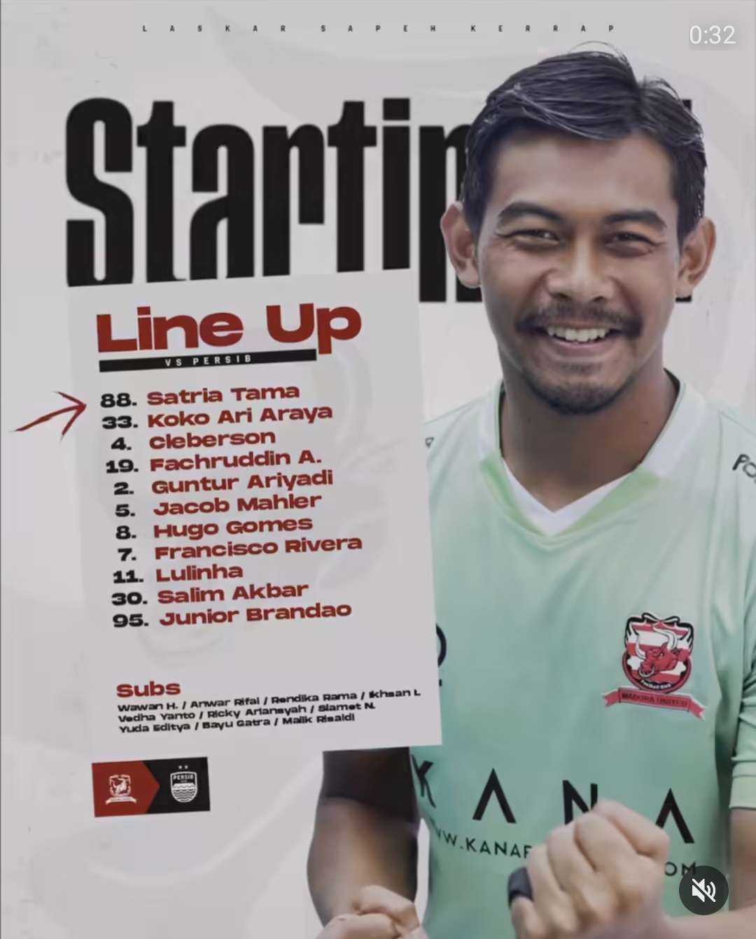 Berikut daftar susunan pemain laskar sape kerrab menghadapi Persib Bandung.