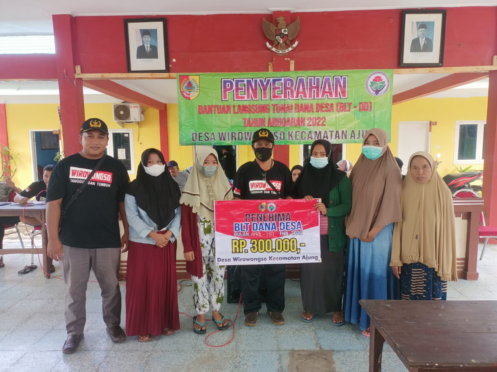 penyaluran  bantuan  BLT-DD kepada KPM mulai dari Pemdes Wirowongso (Kasi, Kaur, LPM, Sekdes), BPD Desa Wirowongso, Toma, Toga dan pihak-pihak terkait guna menyaksikan proses dan tertibnya pembayaran.ungkapnya.