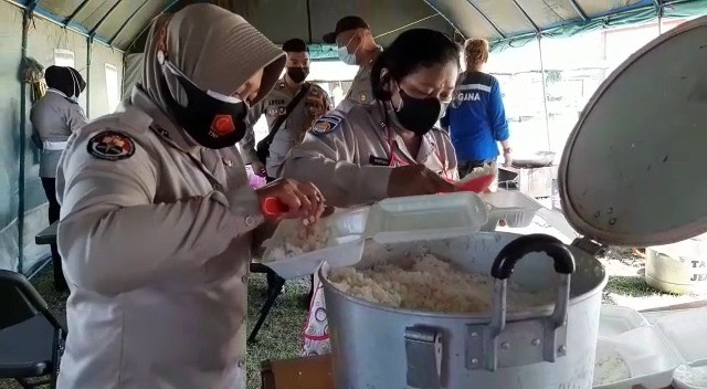 Menurut Kasat Binmas AKP. Yuliati, SH, setiap harinya dapur umum ini bisa membuatkan 500 paket masakan siap saji untuk kebutuhan makan 3 kali sehari.