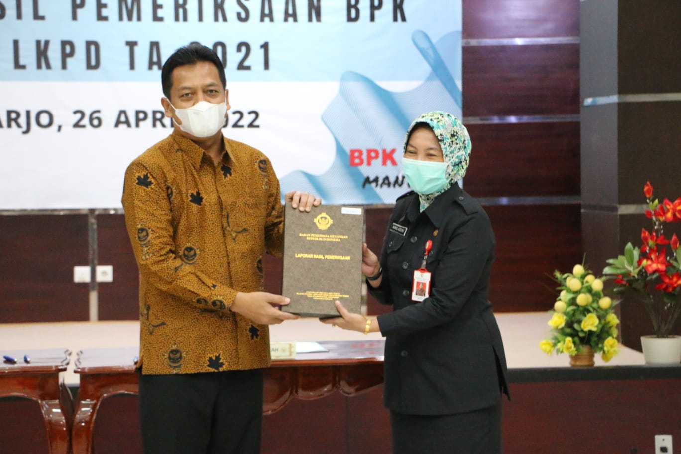 Penyerahan Laporan Hasil Pemeriksaan (LHP) atas Laporan Keuangan Pemerintah Daerah (LKPD) diserahterimakan langsung oleh Kepala BPK Perwakilan Provinsi Jatim Kepada Bupati Bojonegoro dalam hal ini diwakilkan oleh Sekretaris Daerah Kabupaten Bojonegoro Nurul Azizah di gedung BPK RI Perwakilan Jatim, Jl. Raya Juanda Sidoarjo pada Selasa, 26/04/2021.