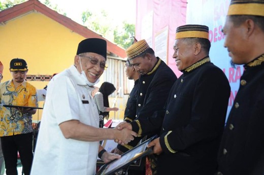 Bupati Sumbawa Mahmud Abdullah menyalami para Camat yanc berhasil menuntaskan lima pilar STBM di acara Deklarasi di Kecamatan Alas Barat