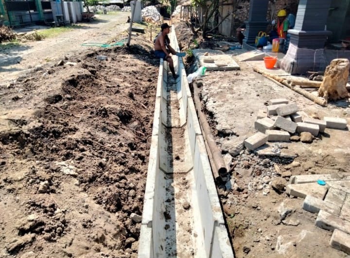 Kades Bajulan Hari Purnomo, SE, mejelaskan, sebagai solusi dalam menyelesaikan buruknya sistem saluran pembuangan air hujan yang menggenangi jalan dan mengakibatkan jalan berlubang.