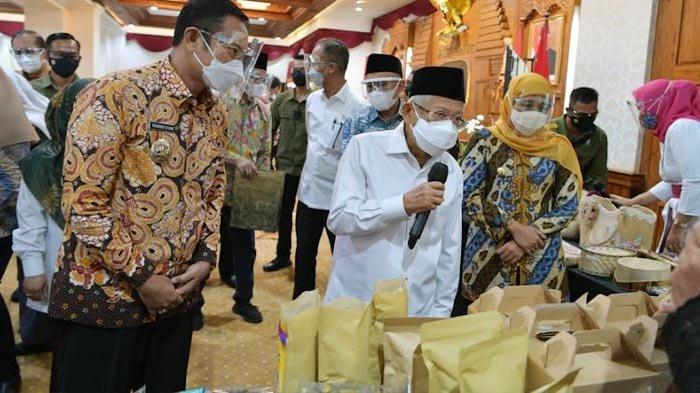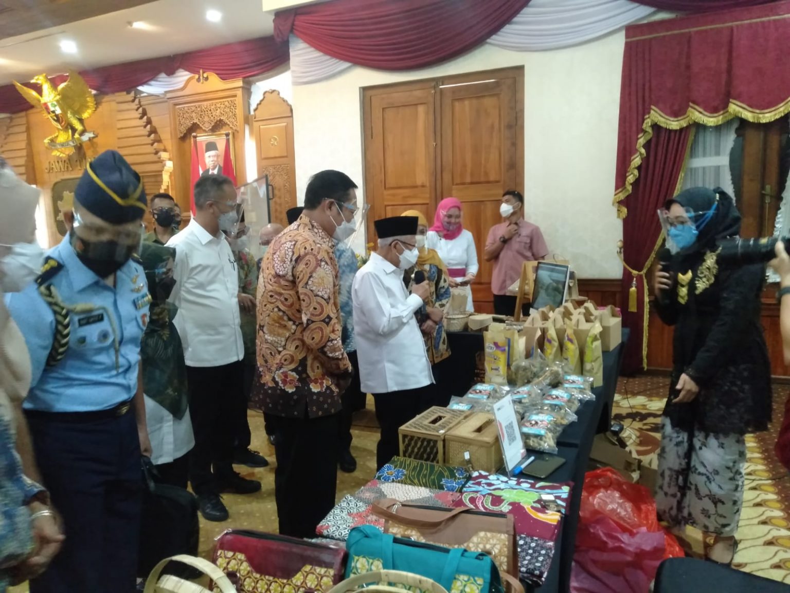 Bupati YES saat mendampingi Gubernur Khofifah dalam rakor percepatan penanggulangan kemiskinan ekstrem bersama Wapres Ma’ruf Amin dan kegiatan pameran hasil olahan produk halal Provinsi Jawa Timur