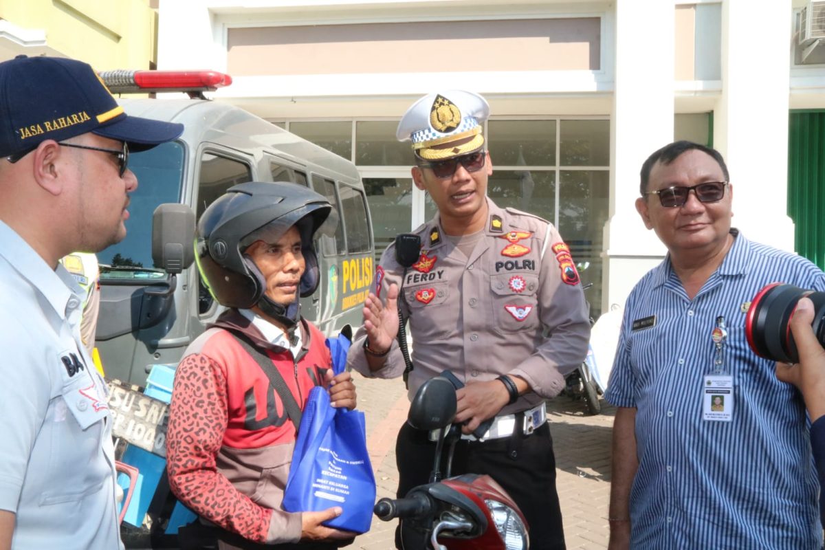 Bahkan dirinya juga diberikan souvenir langsung oleh petugas lantaran tertib dan taat berlalulintas.