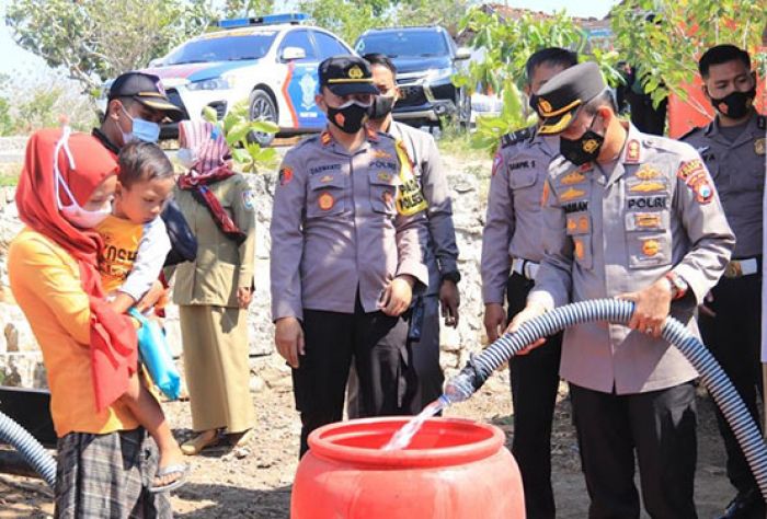 Dilanda Kekeringan, Polres Pasok Air Bersih di Sejumlah Desa di Kecamatan Grabagan