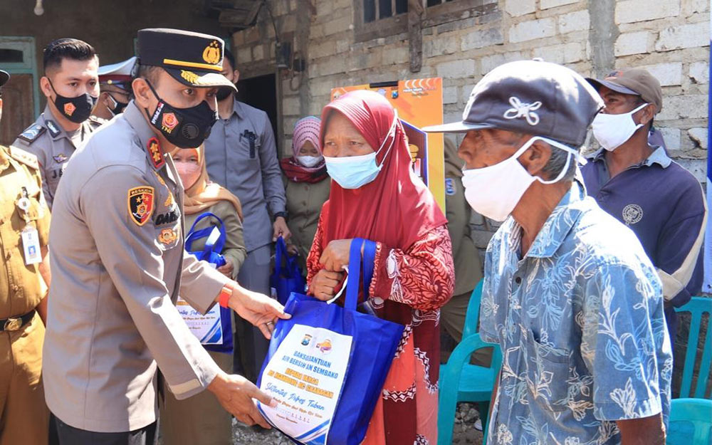 Polres Tuban bekerjasama dengan Badan Penanggulangan Bencana Daerah (BPBD) Kabupaten Tuban, Palang merah Indonesia (PMI) Kabupaten Tuban, Perusahaan Daerah Air Minum (PDAM) serta awak media menggelar bakti sosial dengan membagikan air bersih kepada warga, Selasa (12/10).