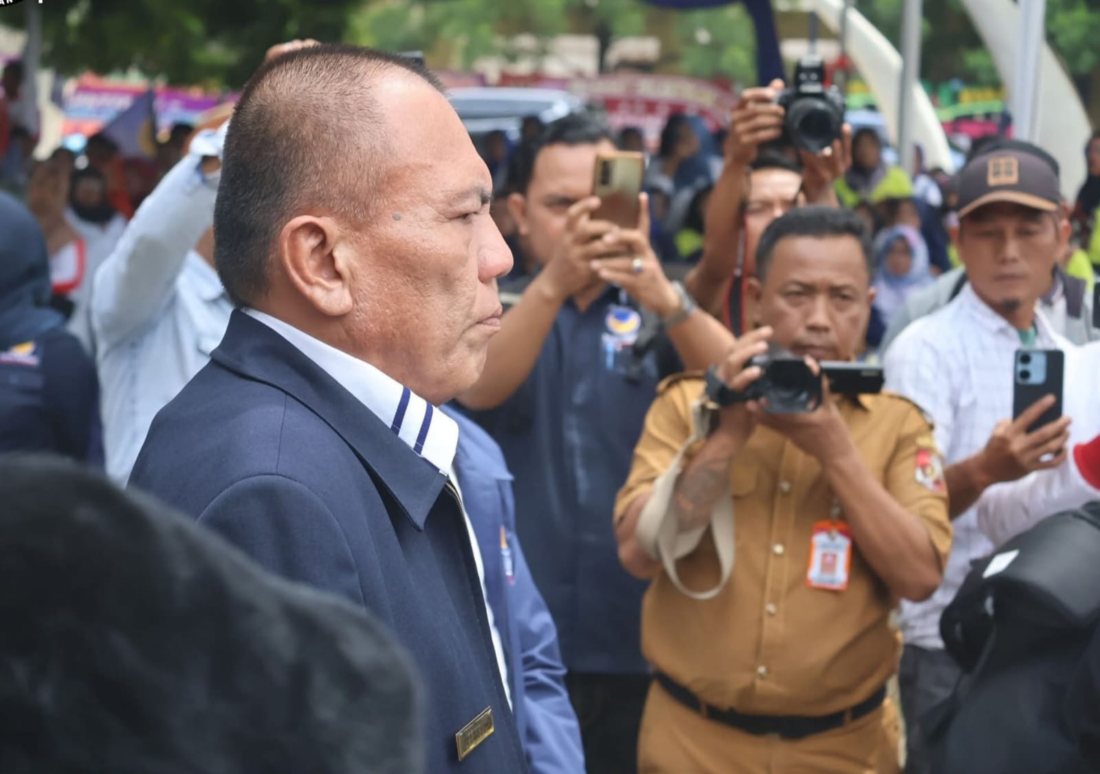 Imam Syuhada kembali menjadi Ketua DPD Partai NasDem Lampung Utara, usai dirinya dilantik Ketua Dewan Pimpinan Wilayah (DPW) Partai NasDem Provinsi Lampung, Herman HN, di halaman Masjid Islamic Center Kotabumi, Senin (26/1/2026).