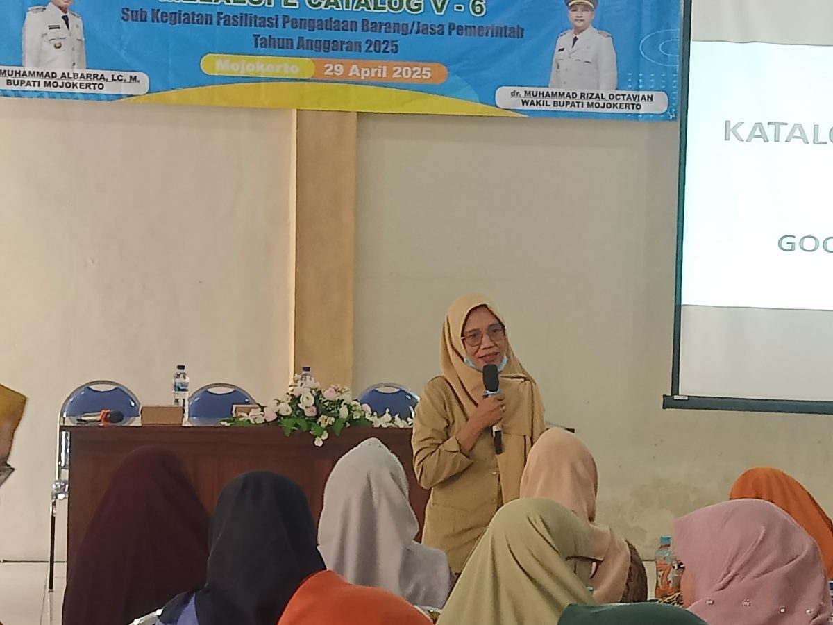 Sementara itu Nara sumber dari Pengadaan Barang dan Jasa (PBJ) Kabupaten Mojokerto, Enggar wati,SE, memberikan bimbingan teknis terkait tata cara penggunaan e-katalog, termasuk publikasi, Informasi terkait e-katalog dan tata cara pengadaan melalui e-katalog dipublikasikan melalui website, media sosial, dan media massa.