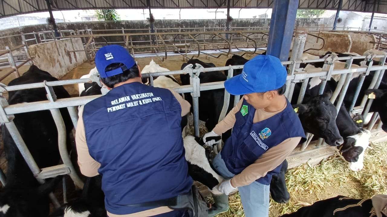 Dinas Peternakan Provinsi Jawa Timur (Disnak Jatim) melakukan vaksinasi Penyakit Mulut dan Kuku (PMK) massal, bagi ratusan sapi perah di wilayah Pujon, Kabupaten Malang, Senin (28/8/2023).