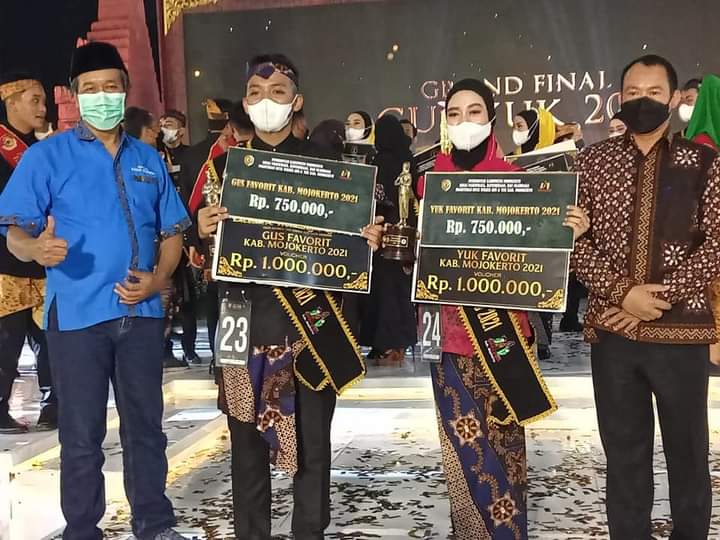 “Sudah banyak proses dilalui oleh adek kita semuanya generasi muda kabupaten Mojokerto dengan berbagai bakat yang mereka miliki dengan berbagai upaya termasuk juga bagaimana mereka mengembangkan kepribadiannya, tidak hanya dari fisik saja, tetapi juga secara psikis dan intelegensi sehingga betul-betul mereka semuanya nanti selesai gelar acara ini langsung siap untuk bekerja mengabdi kepada kabupaten Mojokerto. Bersama-sama dan mengupayakan pariwisata, budaya, ekonomi kreatif di kabupaten Mojokerto yang betul-betul bisa dikembangkan dan diandalkan untuk bisa meningkatkan kesejahteraan masyarakat Indonesia,”. lanjut Bupati Ikfina. Dalam kesempatan itu pula Bupati Ikfina juga meminta seluruh masyarakat kabupaten Mojokerto untuk selalu berpikir positif, kreatif, inovatif. “Biarlah Covid-19 ada, yg penting kita tetap sehat meski pun ada covid dan tetap produktif sehingga kita tetap bisa mengembangkan semua potensi yang kita miliki dan selalu berupaya untuk meningkatkan kesejahteraan,” pungkasnya. Turut hadir secara virtual Wakil Bupati Mojokerto, Forkopimda Kabupaten Mojokerto, Ketua DPRD Kabupaten Mojokerto, Pj Sekda, Asisten 1, Asisten 2, Asisten 3, Kepala Disparpora Kepala Bagian Umum… Sedangkan tamu yang hadir menyaksikan langsung grand Final Gus dan Yuk Kabupaten Mojokerto, yakni Pemilik Wisata Desa BMJ Majapahit Mojokerto Ki Mulyono, SH, MM, didampingi Ketua PHRI Kabupaten Mojokerto, Abah Satuin, yang dikenal sebagai Manager Puri Hotel dan Restoran di Mojokerto ini. ( Kartono )