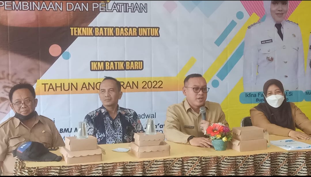 Dinas Perindustrian dan Perdagangan (Disperindag) Kabupaten Mojokerto, terus melakukan terobosan baru guna mendongkrak produktifitas IKM di Bumi Majapahit ini, salah satunya dengan mengelar Pembinaan dan Pelatihan Teknik Batik Dasar Untuk IKM yang acara pembukaan dilakukan oleh Kepala Disperindag Kabupaten Mojokerto, H. Iwan Abdillah SH, S.Sos, M.Si, di Pendopo Graha Mulyo Jati Mojopahit Wisata Desa BMJ Mojopahit, Senin ( 24 / 10 / 2022 ).