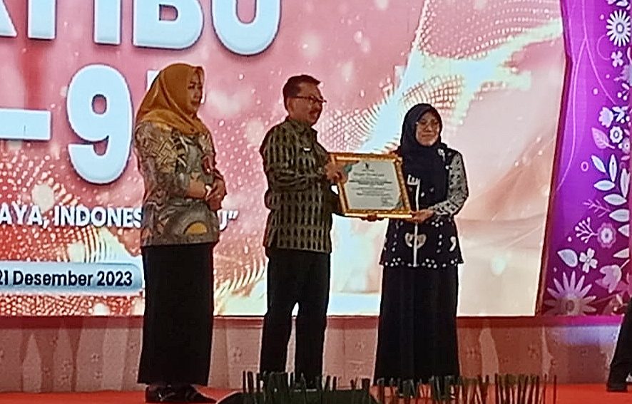 Penghargaan yang diberikan sebagai perangkat daerah dengan kualitas sarpras responsif gender terbaik tahun 2023 itu ditanda tangani Gubernur Jatim. Penghargaan berupa piagam itu diserahkan Asisten Pemerintahan dan Kesejahteraan Rakyat Setdaprov Jatim, Drs. Benny Sampirwanto, MSi mewakili Gubernur Jatim Khofifah Indar Parawansa kepada Kabid Pemberdayaan dan Pengawasan Kearsipan (PPK) Disperpusip Jatim, Aaartanti Tri Wahyuni, SH, MSi mewakili Kepala Disperpusip Jatim Ir. Tiat S. Suwardi, MSi di tengah-tengah perayaan Peringatan Hari Ibu (PHI) ke 95 tahun 2023 tingkat provinsi Jatim di Hotel Novotel Samator, Jl. Kedung Baruk, Surabaya, Kamis (21/12/2023).