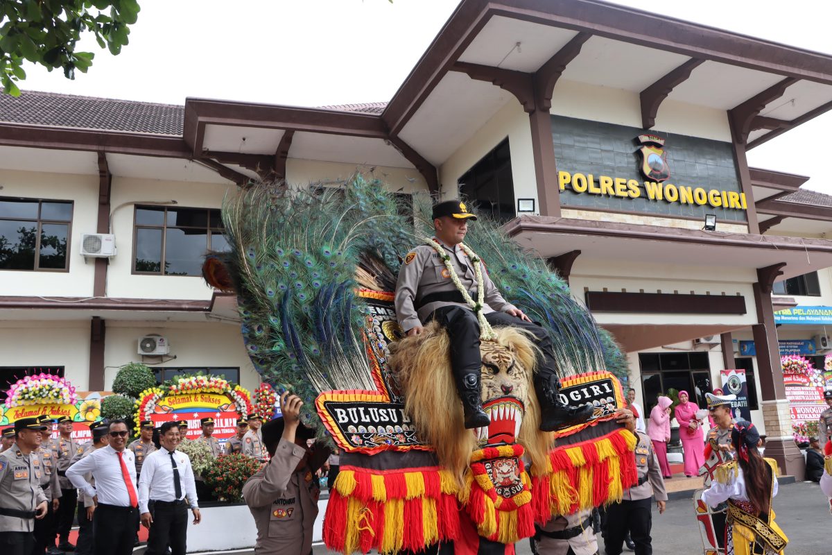 Momen penyambutan berlangsung meriah dan unik, diwarnai dengan jajar hormat, tradisi Gerbang Pora, hingga penampilan seni budaya lokal seperti Reog dan Kethek Ogleng, yang turut dipersembahkan oleh masyarakat Wonogiri.