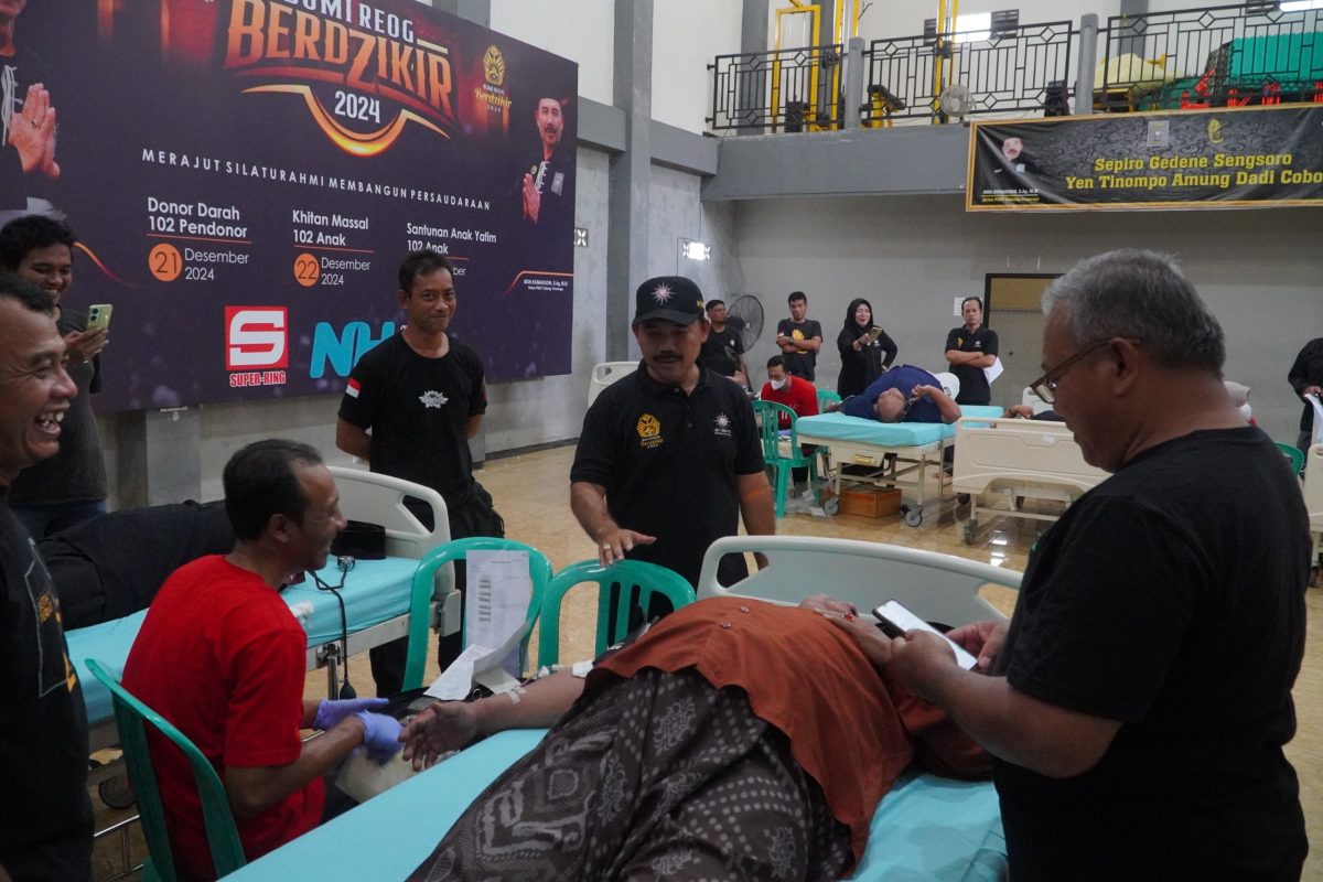 Ketua Persaudaraan Setia Hati Terate (PSHT) Cabang Ponorogo, Kangmas Moh. Komarudin, S.Ag., MSi menerangkan bahwa kegiatan donor darah ini dilakukan dalam rangka menyambut gelaran Bumi Reog Berdzikir 2024.