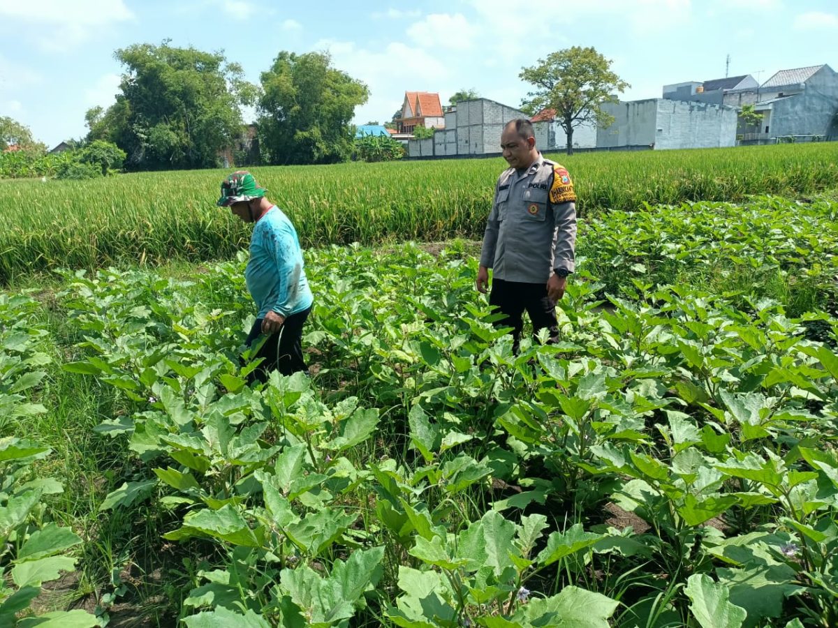 Dalam upaya mendukung program ketahanan pangan Polresta Sidoarjo Polda Jatim, Bhabinkamtibmas Desa Sidokepung, Aipda Adi Maret, melaksanakan kegiatan pendampingan kepada para petani terong di wilayah Kecamatan Buduran, Kabupaten Sidoarjo, pada Minggu (8/6/2025).