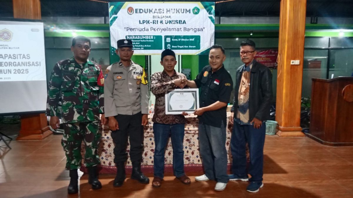 Acara yang berlangsung Senin, 27 Oktober 2025 di aula Desa Tingal Kabupaten Blitar tersebut dihadiri oleh Kepala desa Tingal, Karang Taruna ,Babinsa,Babinkatimas serta tokoh masyarakat setempat. Dalam sambutannya Rudy Puryono S.H Pembina DPC LPK – RI Kabupaten Blitar menekankan pentingnya peran generasi muda untuk memahami dan menerapkan nilai-nilai hukum demi menjaga keutuhan dan kemajuan bangsa/Desa Tingal Kab Blitar“Pemuda penyelamat Desa Tingal bukan sekadar jargon kosong, melainkan panggilan nyata untuk kita semua agar bertanggung jawab terhadap masa depan Indonesia melalui kesadaran hukum yang kuat” ujar pembina DPC LPK – RI Blitar.