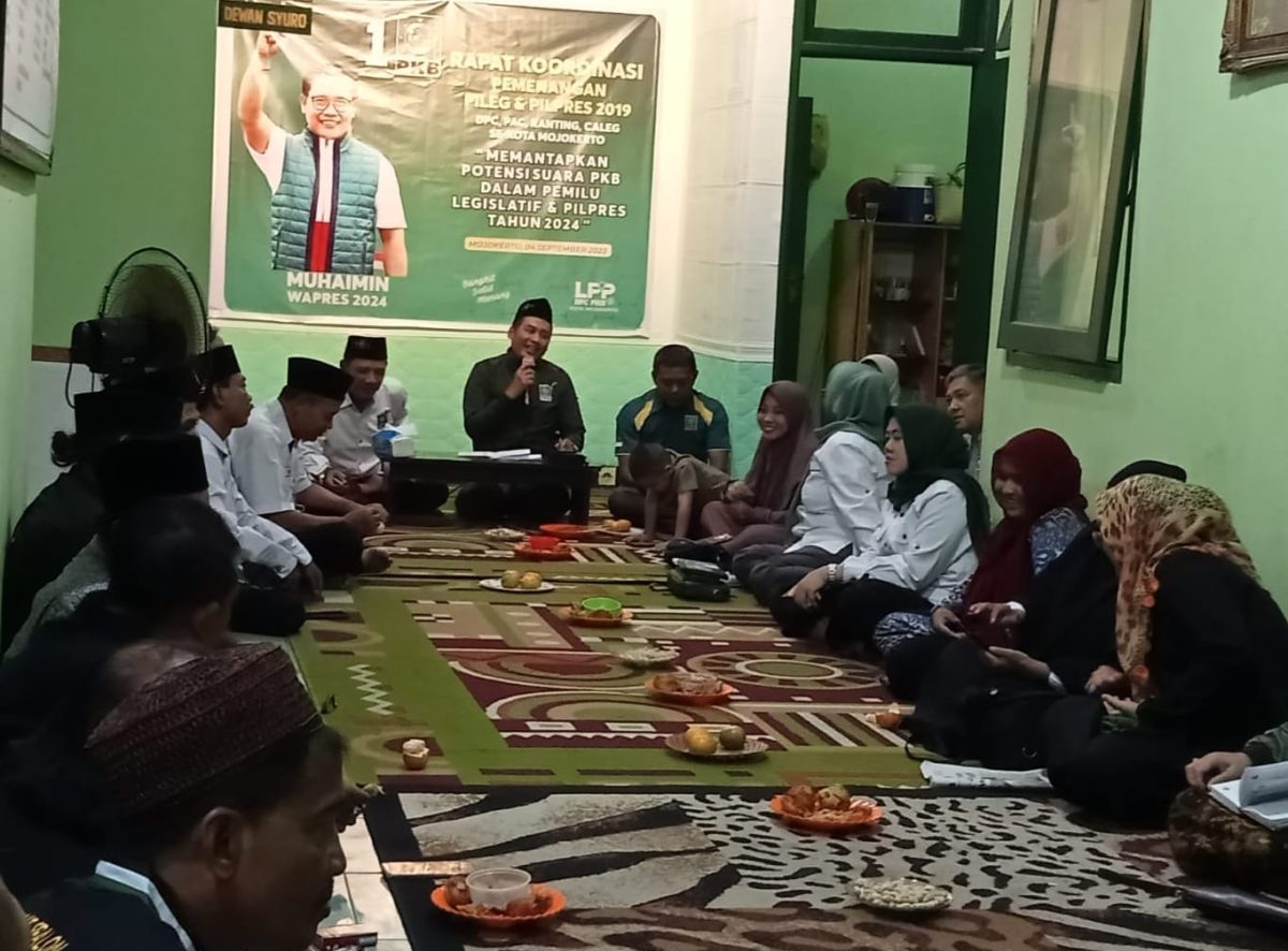 Gelaran Deklarasi Anies Baswedan ( Pak Anies ) Sebagai Calon Presiden (Capres) dan Muhaimin Iskandar ( Gus Muhaimin ) Sebagai Calon Wakil Presiden (Cawapres) yang diusung oleh Partai NasDem dan Partai PKB untuk menyongsong Pilpres 2024 yang digelar di Hotel Majapahit, Surabaya, Jawa Timur, pada, Sabtu (2/9/2023) lalu ternyata direaksi cepat oleh Ketua DPC PKB Kota Mojokerto H. Junaedi Malik SE dan Sekretaris nya Ferry Samsul Huda yang langsung mengadakan pertemuan khusus dengan mengumpulkan seluruh Pengurus DPC PKB, Para Caleg , Pengurus PAC, Ranting, dan Seluruh Kader PKB disemua tingkatan, serta Komponen partai, termasuk juga para Konstituen PKB, beserta Banom – Banomnya untuk melakukan Konsolidasi Pemenangan pasangan AMIN di Kantor DPC PKB Kota Mojokerto di Jalan Raya Brawijaya No.108 Kota Mojokerto, Senin Malam ( 04 / 09 / 2023 ) dengan tujuan untuk merapatkan barisan, menyolidkan barisan, guna menyusun kemenangan untuk pasangan Pak Anies dan Gus Muhaimin di Wilayah Kota Mojokerto ini.
