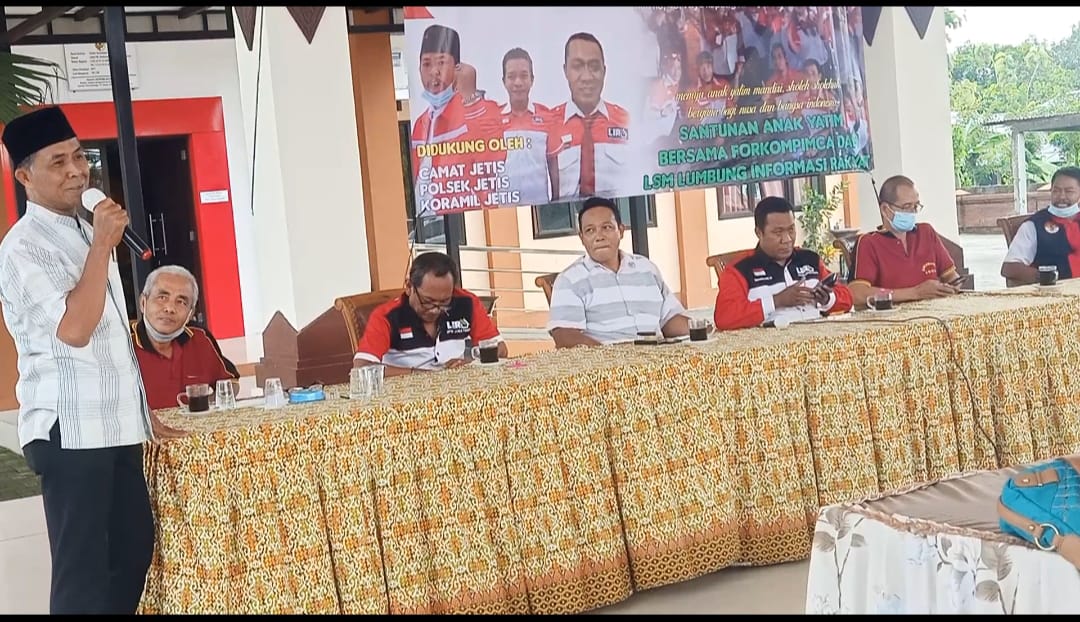 Aksi peduli sosial ditunjukkan oleh Lembaga Dewan Pimpinan Daerah (DPD) Lumbung Informasi Rakyat (LIRA) Kabupaten Mojokerto dibawah Ketuanya Muhammad Arif, SH ini dengan menyantuni Puluhan Anak Yatim Bersama Forkopimca, didampingi Sekcam Jetis Sutomo, MM, Kepala Desa Kupang Andridi dan Kepala Desa Wringinrejo yang diadakan di Pendopo Kecamatan Jetis Kabupaten Mojokerto, Jumat Siang ( 14/ 01/ 2022 ).