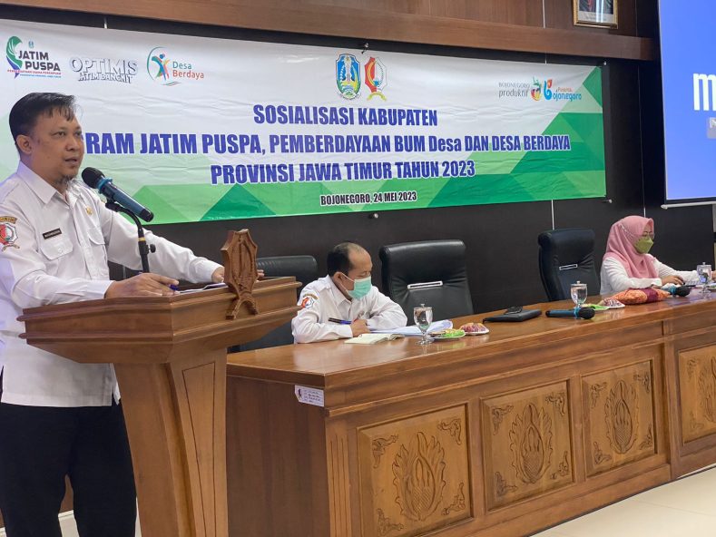 Dinas Pemberdayaan Masyarakat dan Desa (DPMD) Provinsi Jawa Timur bekerjasama dengan DPMD Kabupaten Bojonegoro mengadakan sosialisasi Program Jatim Puspa (Jawa Timur Pemberdayaan Usaha Perempuan). Ini merupakan program pemberdayaan BUM Desa dan Desa Berdaya di Kabupaten Bojonegoro tahun 2023. Acara sosialisasi digelar di Ruang Rapat Partnership Room Lantai IV Gedung Pemkab, Rabu (24/5/2023).