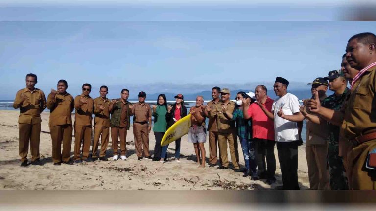 Ketua Umum KONI Pusat, Letjen TNI (Purn) Marciano Norman dan Ketua Umum PP Pordasi, Triwatty Marciano bersama Bupati Dompu, Kader Jaelani dan jajaran saat meninjau pantai Lakey Dompu, Senin, 21 Maret 2022