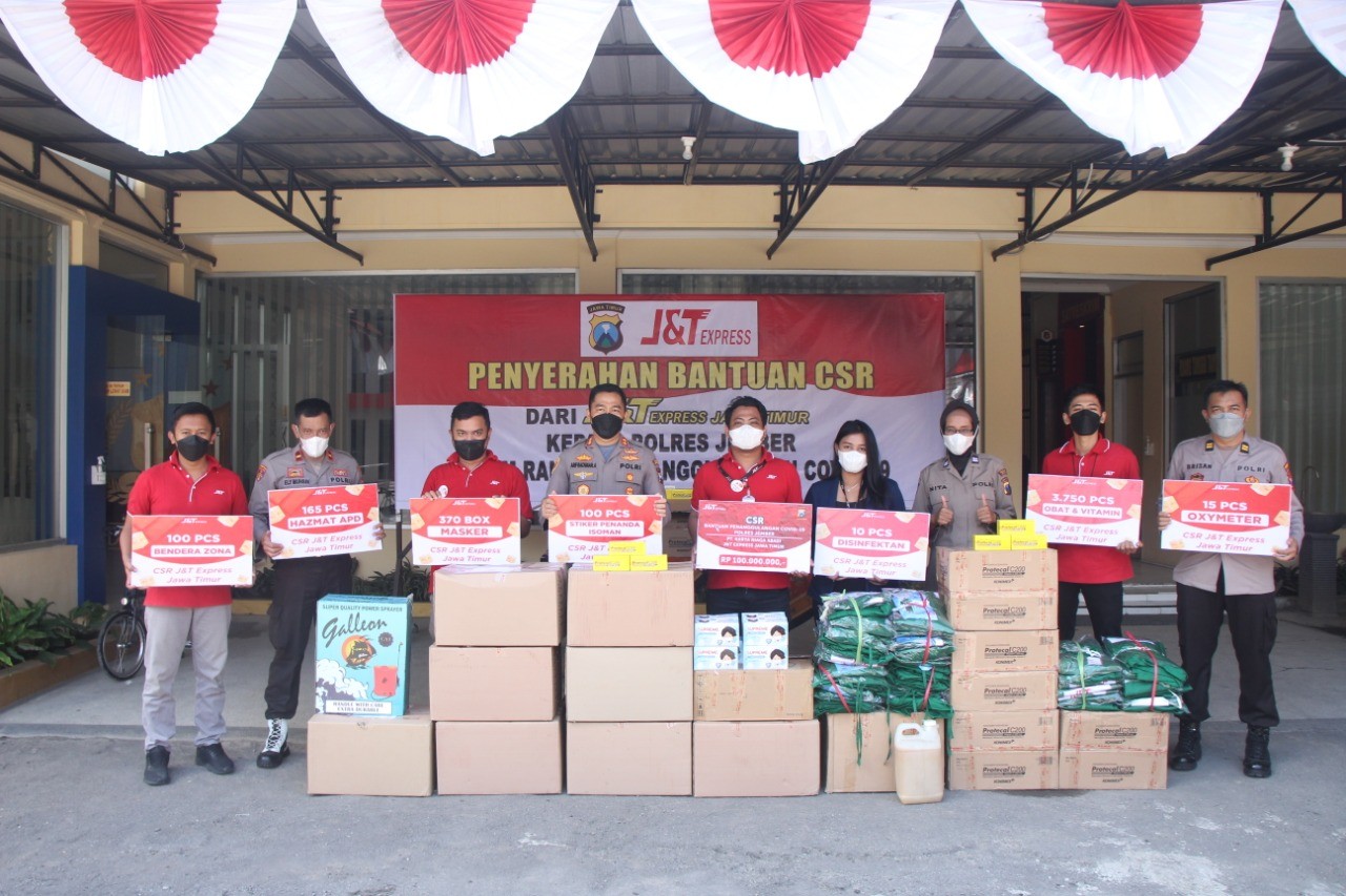J & T Ekspress Indonesia mendukung program peduli upaya penanggulangan Pandemi Covid 19 selama diberlakukannya PPKM di Kabupaten Jember. Bentuk dukungan tersebut dilakukan dengan memberi bantuan senilai Rp100 juta.