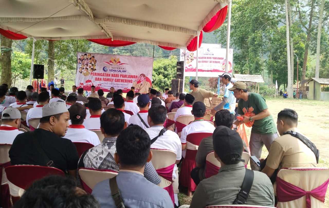 Puluhan napiter yang tergabung dalam yayasan Gema Salam Surakarta menggelar upacara peringatan hari pahlawan ke 78 tahun 2023 di Wonder park Tawangmangu Karanganyar. Minggu (12/11/2023).