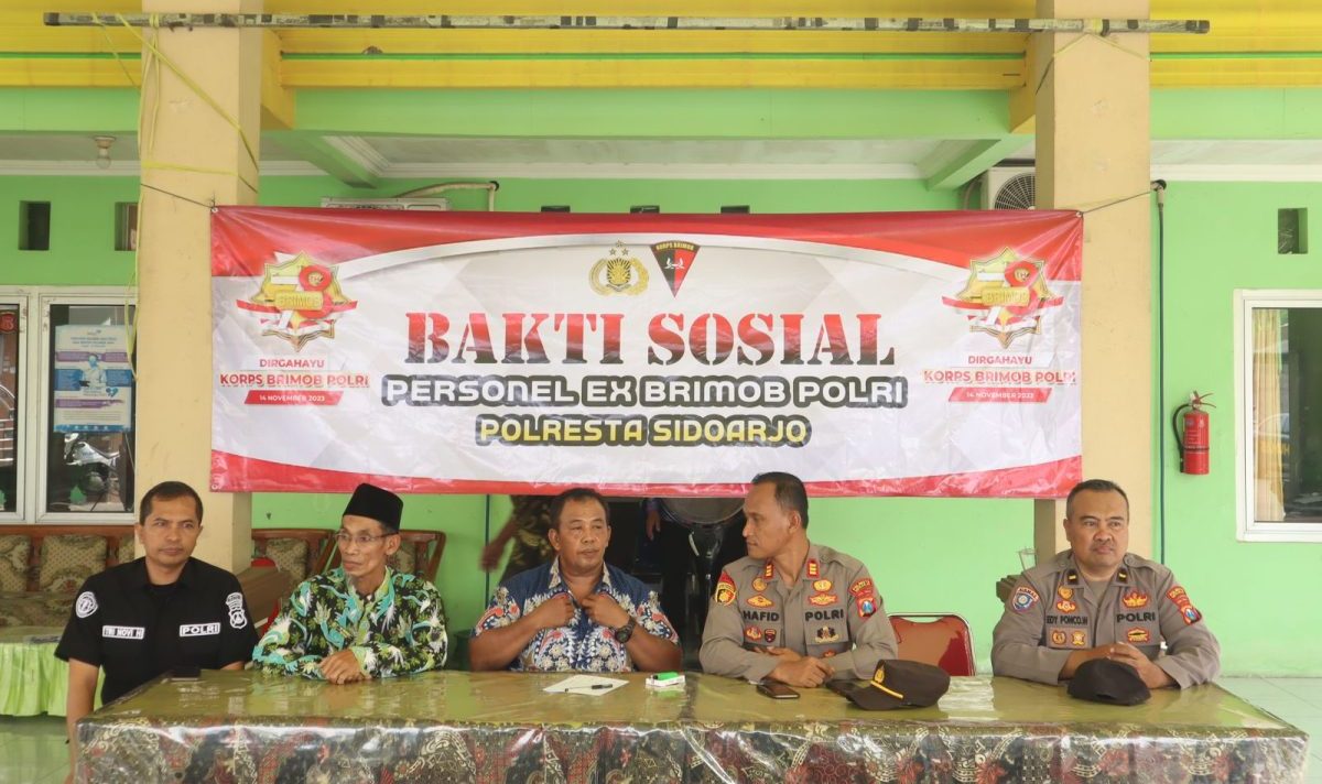 Memperingati Hari Ulang Tahun ke-78 Brimob Polri, anggota eks Brimob di wilayah Kabupaten Sidoarjo gelar bakti sosial (baksos) secara door to door ke warga yang membutuhkan bantuan.