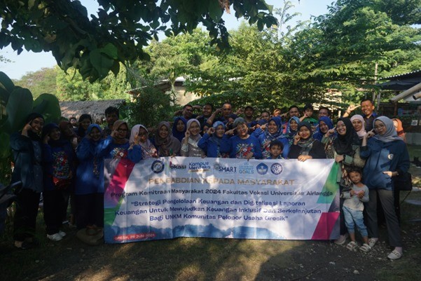 Tidak jarang pelaku UMKM menghadapi kendala dalam berkembang dan mendapatkan akses permodalan. Diperlukan aksi konkret yang dapat mendukung ketercapaian keuangan inklusif dan berkelanjutan bagi UMKM di Kabupaten Gresik khususnya melalui pengelolaan keuangan dan digitalisasi laporan keuangan. Dalam upaya untuk menjawab tantangan tersebut, Fakultas Vokasi Universitas Airlangga bekerja sama dengan Komunitas Pelopor Usaha Gresik (KPUG), telah menggelar pelatihan dan pendampingan yang dikemas dalam bentuk pengabdian kepada masyarakat bertemakan “Strategi Pengelolaan Keuangan dan Digitalisasi Laporan Keuangan Untuk Mewujudkan Keuangan Inklusif dan Berkelanjutan”. Rangkaian kegiatan pengabdian kepada masyarakat berlangsung pada tanggal 29 Juni 2024, di La Bamboe Kabupaten Gresik.