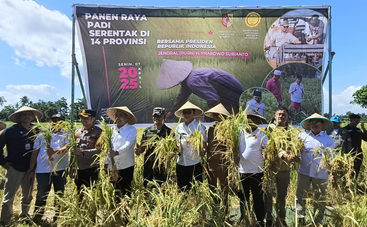 Muhammad Fawait Bupati Jember mengatakan ke sejumlah awak media, “Kami bersama Sama mendengarkan Bapak Presiden bersama jajaran forkopimda ada pak Dandim ada pak Wakapolres ada dari DPRD ada Kabulog dari kawan HKTI serta kawan kawan penggerak pertanian Kapoktan semuanya hari ini kita melaksanakan panen raya serentak dari empat belas provinsi sesuai arahan Bapak presiden republik Indonesia”, tutur Bupati Jember