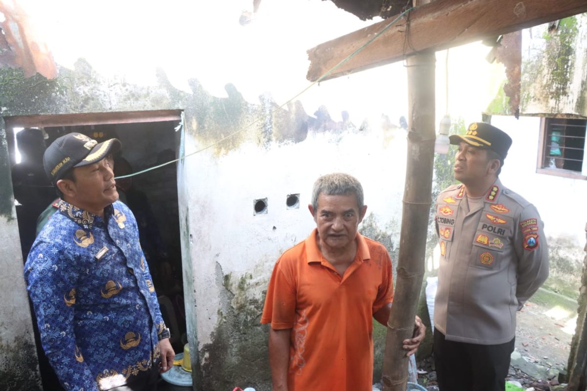 Bupati Sidoarjo Subandi bersama Kapolresta Sidoarjo Kombes Pol Christian Tobing dan Dandim 0816/Sidoarjo melakukan inspeksi mendadak (sidak) ke salah satu Rumah Tidak Layak Huni (RTLH) milik warga bernama Khusen di Desa Klurak, Kecamatan Candi, Kabupaten Sidoarjo, Selasa (17/6/2025).