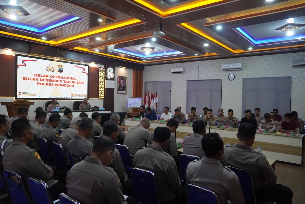 Suasana Aula Sanika Satyawada Polres Wonogiri pada Rabu pagi (10/12/2025) terasa lebih hidup. Para pejabat utama, kapolsek jajaran, hingga anggota dari berbagai satuan berkumpul untuk mengikuti kegiatan Analisa dan Evaluasi (Anev) serta Gelar Operasional Bulan Desember 2025.