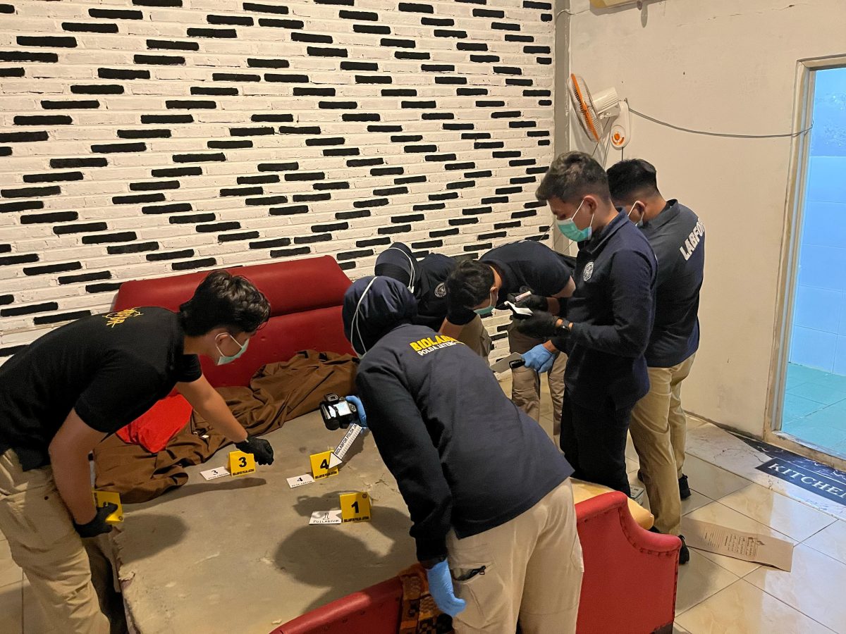 Dalam keterangan, di ketahui bahwa Tim olah TKP dipimpin oleh AKBP Rostiawan bersama melakukan kegiatan pengamatan umum lokasi, dokumentasi visual, pencarian dan pengumpulan barang bukti, serta pemeriksaan awal terhadap titik-titik yang dicurigai mengandung cairan tubuh.