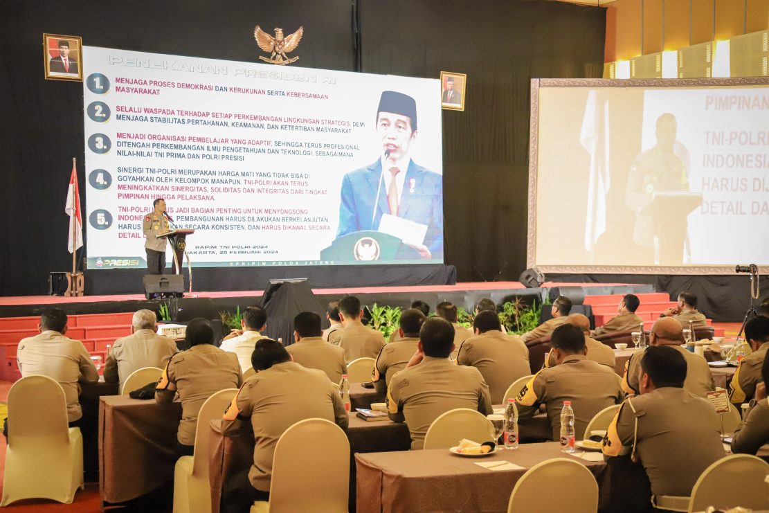 “Rapat hari ini sebagai bentuk evaluasi kegiatan Kepolisian yang telah dilakukan selama Triwulan 1 (tahun 2024) sekaligus untuk mengecek kesiapan pengamanan ibadah di bulan Ramadhan serta arus mudik dan balik Lebaran,” ujar Kapolda dihadapan pers usai memberi arahan dalam kegiatan.