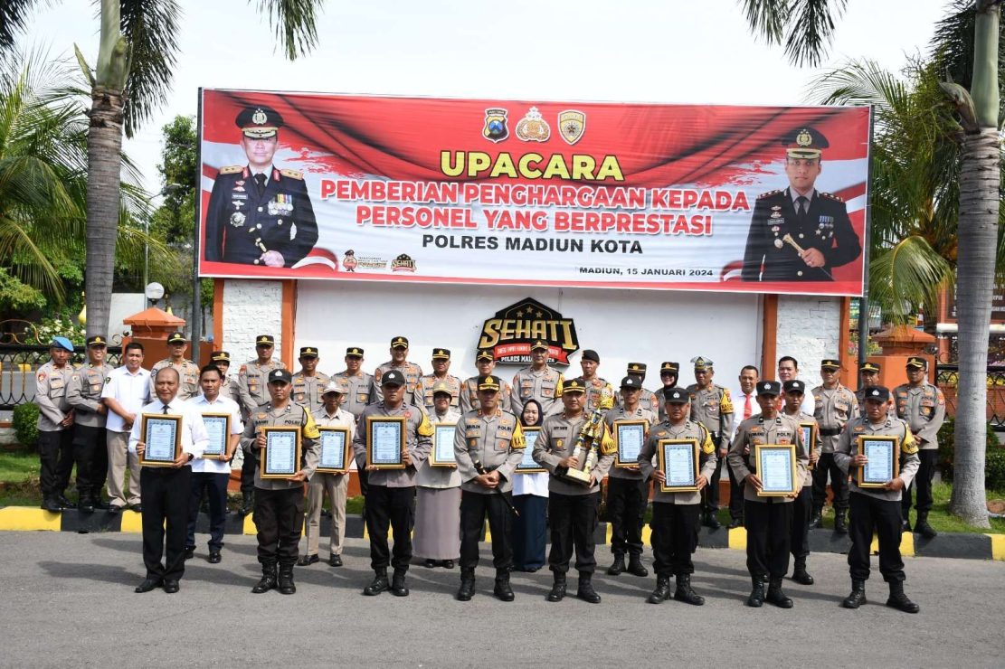 Penghargaan diberikan kepada 12 personel Polres Madiun Kota. Mereka dinilai berprestasi dalam melaksanakan tugas kepolisian.