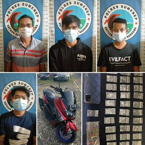 Keempat tersangka yang diringkus itu yakni Sumat, umur 32 tahun, warga Dusun Sembung Desa Larangan Barma Kecamatan Batuputih, Achmad Widad Fuady, umur 26 tahun, warga Jalan KH. Mansyur 1/20 Desa Pangarangan Kecamatan Kota Sumenep.