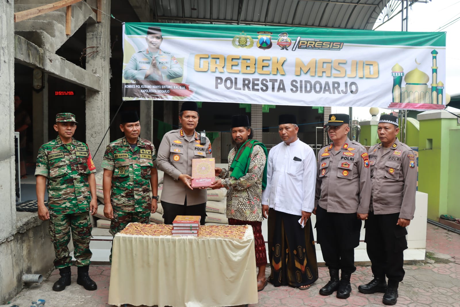 “Di bulan Ramadhan ini, kami ingin berbagi dan membangun rasa peduli anggota kepada tempat ibadah maupun masyarakat. Salah satunya ada masjid yang sedang membangun atau renovasi, kami tindaklanjuti melalui program Gerebek Masjid untuk berikan bantuan material,” jelas Kapolresta Sidoarjo Kombes Pol. Kusumo Wahyu Bintoro.