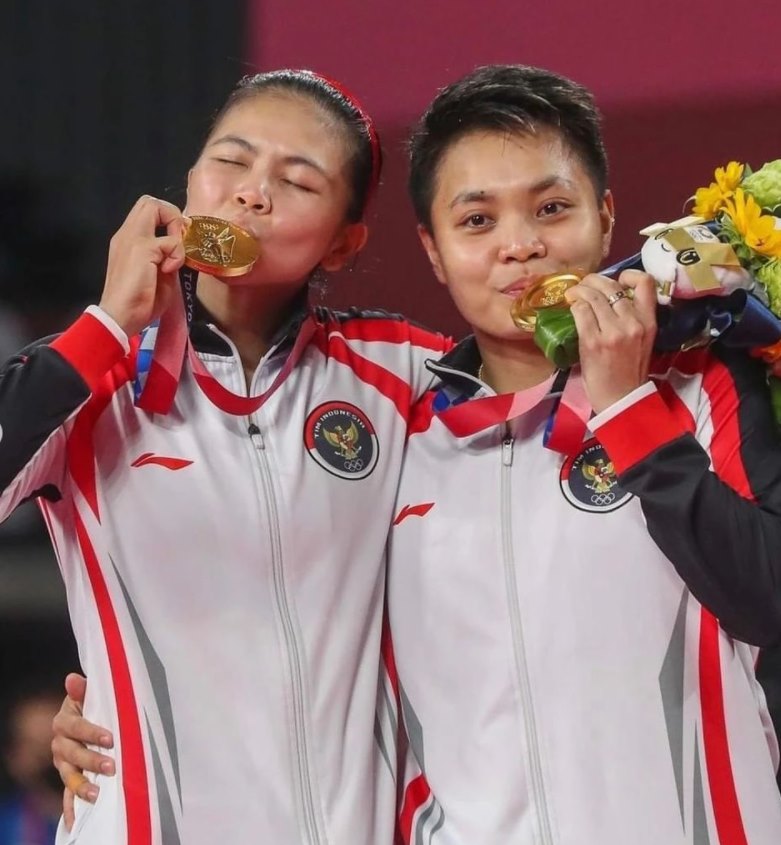 Greysia/Apriyani merupakan ganda putri pertama Indonesia yang berhasil merebut medali emas olimpiade. Mereka menumbangkan andalan Cina, Qing Chen Chen/Yi Fan Jia di babak final dengan skor 21-19, 21-15. (red)
