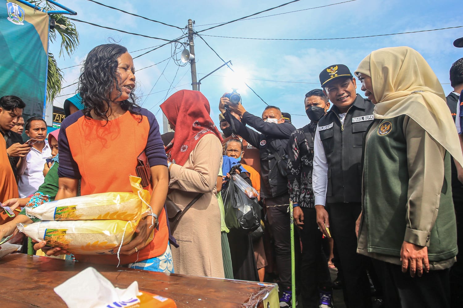 Pagi ini, Jumat (10/2), Gubernur Jawa Timur Khofifah Indar Parawansa didampingi Wakil Bupati Sidoarjo Subandi, dan jajaran Disperindag Jatim, kepala Bulog Divre secara khusus meninjau kelancaran Operasi Pasar yang menyediakan beras berkualitas dengan harga di bawah HET di Pasar Taman Sepanjang, Sidoarjo.