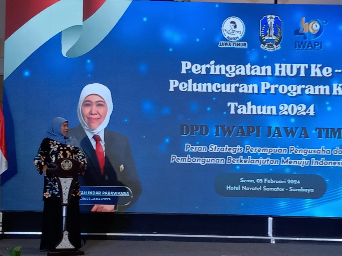 Itu disampaikan gubernur saat menghadiri peringatan HUT Ke-49 dan peluncuran Program Kerja Tahun 2024 Dewan Pengurus Daerah (DPD) Ikatan Wanita Pengusaha Indonesia (IWAPI) Jawa Timur di Surabaya, Senin (5/2/2024).