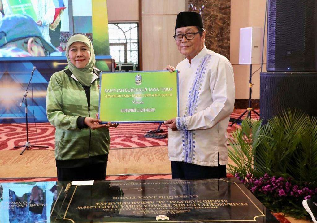 Peresmian PLTS Atap se-Jatim ini ditandai dengan penandatanganan 20 Prasasti Penerima Bantuan PLTS Atap oleh Gubernur Khofifah. Kemudian, dilanjutkan penyerahan bantuan PLTS Atap kepada 18 Pondok Pesantren dan 2 UPT Pelabuhan Perikanan di Jatim.