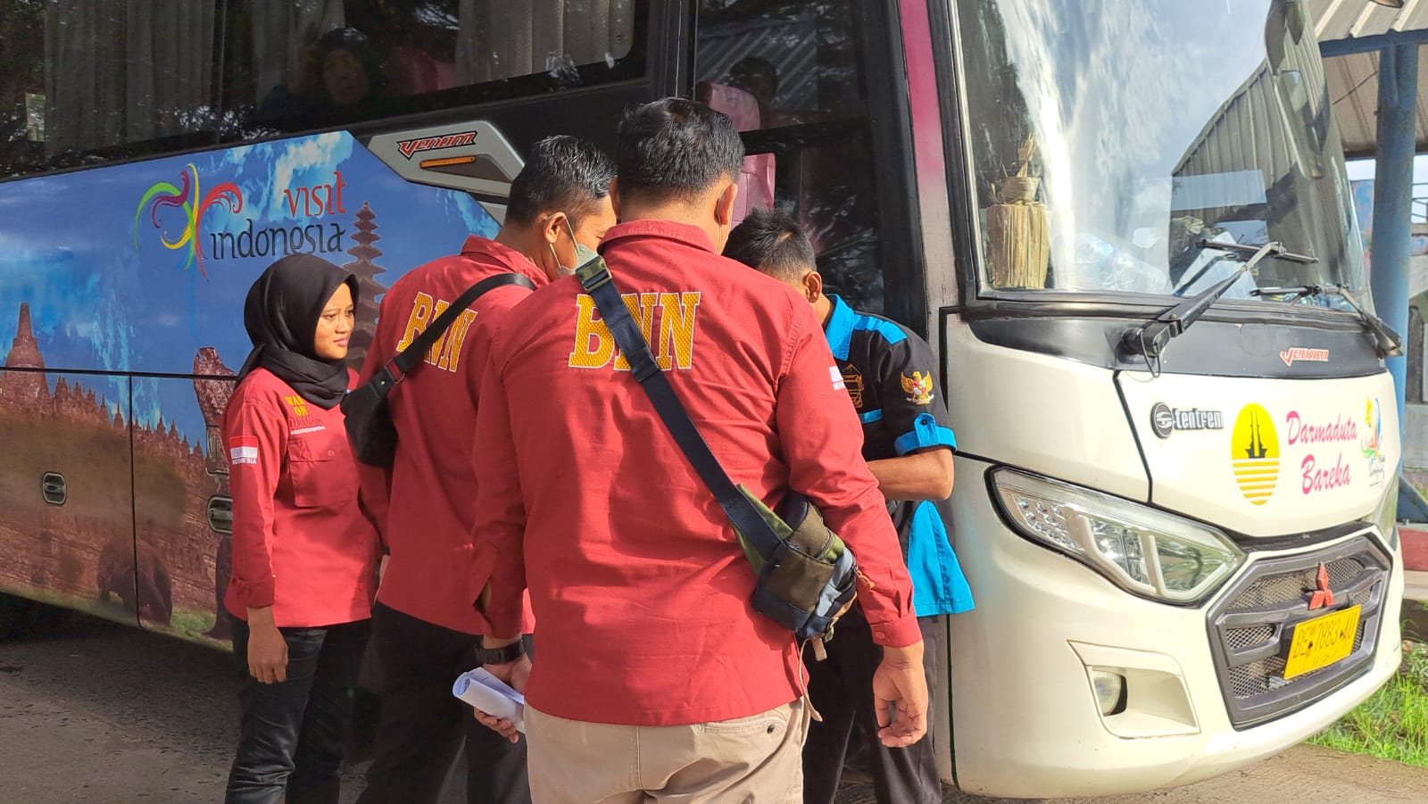 Guna memberikan keamanan, kenyamanan serta keselamatan para penumpang, Badan Narkotika Nasional Kabupaten (BNNK) Way Kanan melakukan razia kepada para supir bus dan kenek serta penumpang bus dan travel di Terminal Simpang PROPAU Kotabumi, Selasa (31/01/2023).