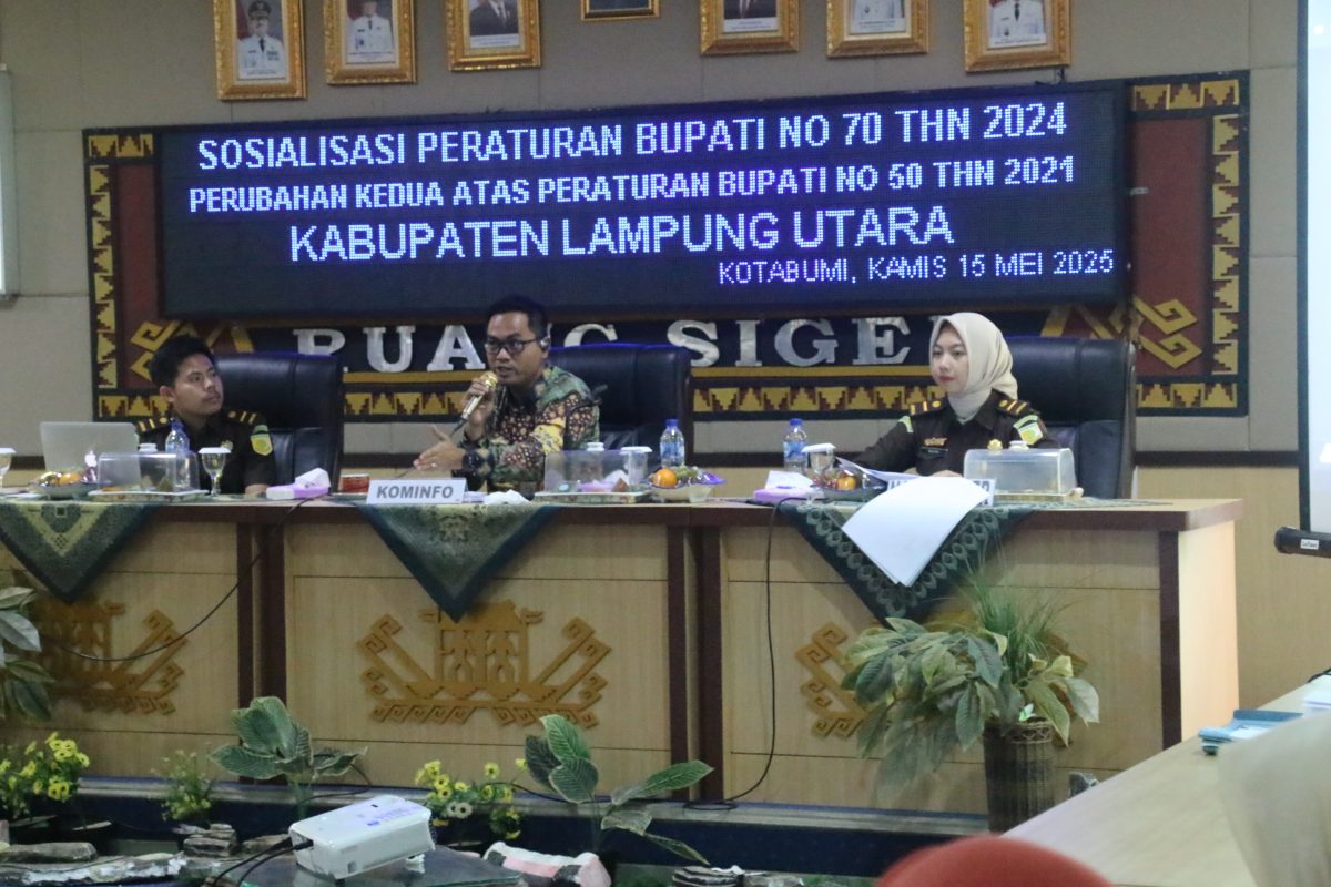 Pemerintah Kabupaten Lampung Utara melalui Dinas Komunikasi dan Informatika (Kominfo) menggelar Sosialisasi Peraturan Bupati Nomor 50 Tahun 2021 tentang Kerja Sama Perangkat Daerah dengan Perusahaan Pers, yang telah diperbarui terakhir dengan Peraturan Bupati Nomor 70 Tahun 2024. Kegiatan ini berlangsung di Ruang Siger, Sekretariat Daerah Kabupaten Lampung Utara dan dibuka secara resmi oleh Sekretaris Daerah Kabupaten Lampung Utara, Drs. Lekok, M.M.