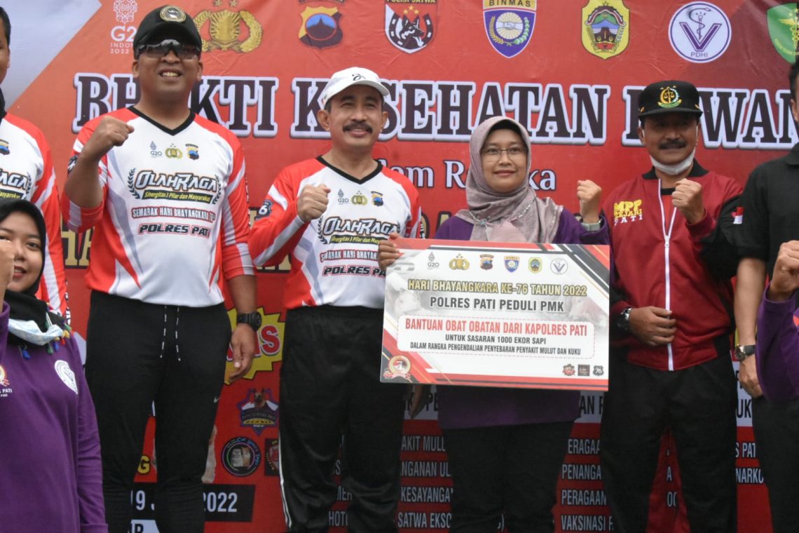 Bertempat di Stadion Joyokusumo, Bupati Pati Haryanto, Minggu (19/6), menghadiri olahraga bareng dalam rangka peringatan Hari Bhayangkara ke-76 tahun 2022.