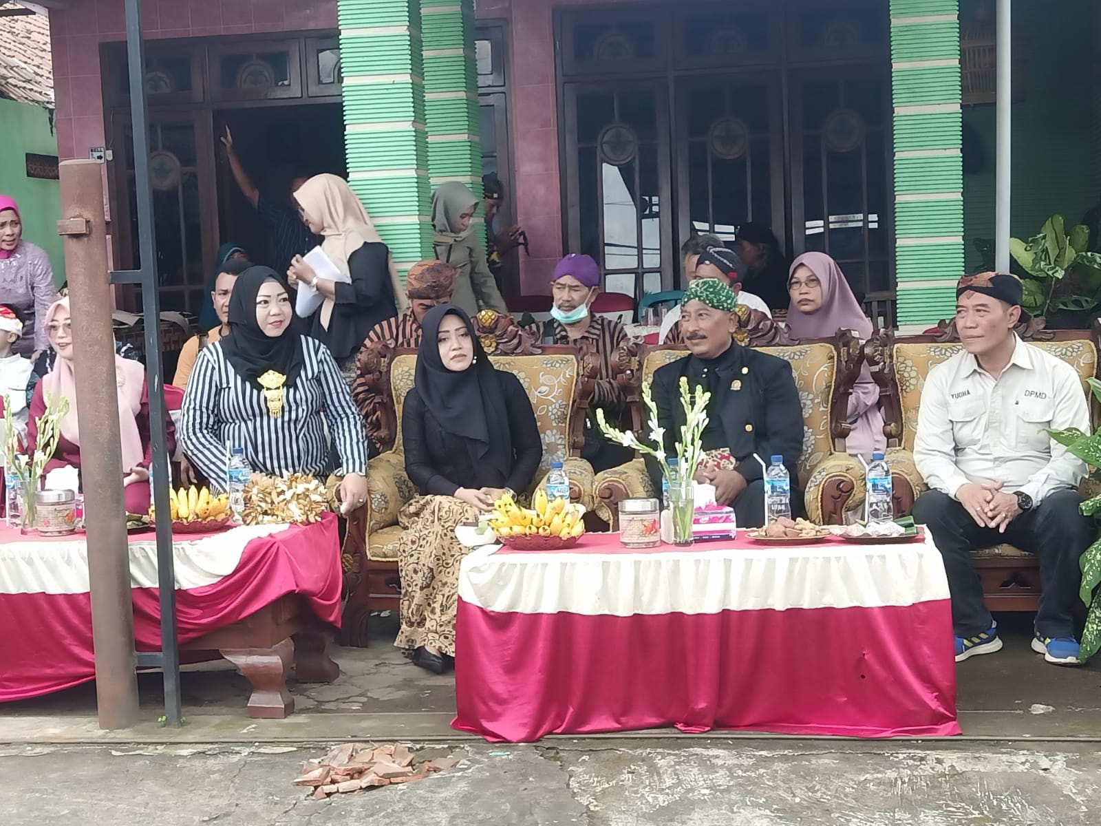 Bupati Mojokerto, dr. Ikfina Fahmawati, MSi., didampingi Kepala Disparpora Kabupaten Mojokerto Norman Handhito, SIP., MSi., Kepala DPMD H. Yudha Akbar Prabowo SE., MM., Camat Trowulan Jhon Mujiono, SH., MM., dan Kepala Desa Jatipasar H. Mulyadi, SH., berkesempatan menghadiri agenda Ruwatan Desa Jatipasar, Kecamatan Trowulan, Kabupaten Mojokerto, Minggu (5/3).