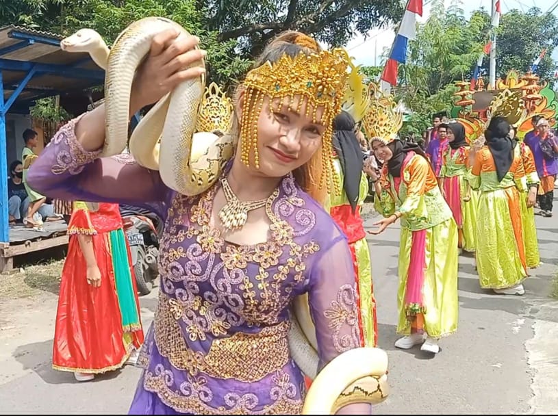 Pada agenda ini, Bupati Ikfina pun turut menikmati pawai budaya di jalan masuk arah Candi Wringin Lawang.