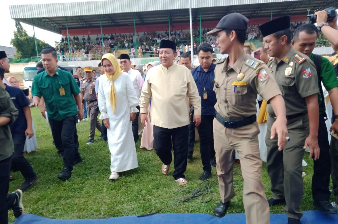Lapangan sepak bola Stadion Sukung kotabumi dipadati ribuan masyarakat yang mengikuti Pengajian Akbar bersama Gubernur Lampung Arinal Djunaidi didampingi Pejabat Bupati Lampung Utara Aswarodi. Selasa (21/5/2024)