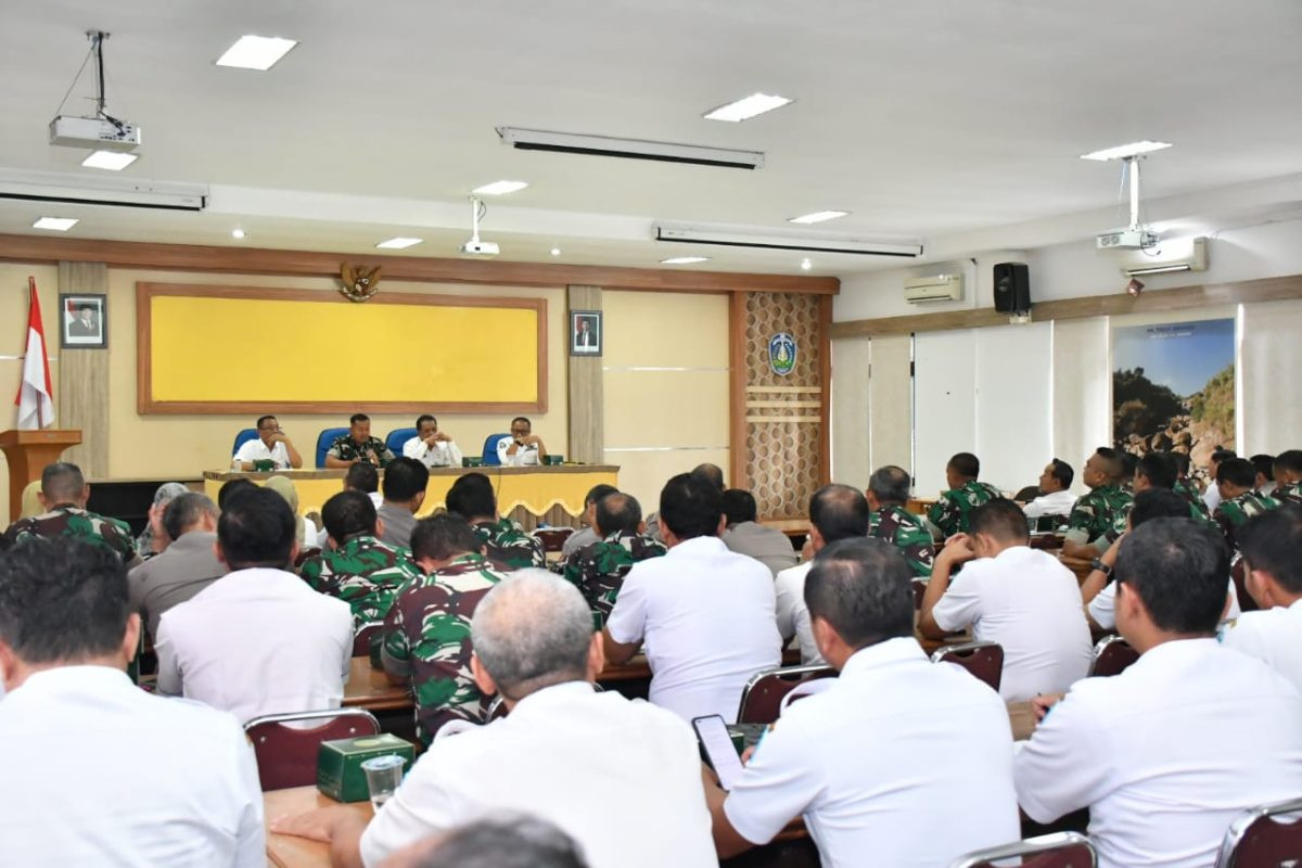 Rakor dengan penanggung jawab Plt. Bupati Ponorogo Hj. Lisdyarita, S.H., tersebut dihadiri antara lain : Dandim 0802/Ponorogo Letkol Arh Farauk Saputra, S. Sos., MMDS; Asisten Perekonomian dan Pembangunan Sekretariat Daerah Kabupaten Ponorogo Drs. Harjono, M.Kes; Bakorwil 1 Madiun R Heru Wahono Santoso S. Sos., M.M.