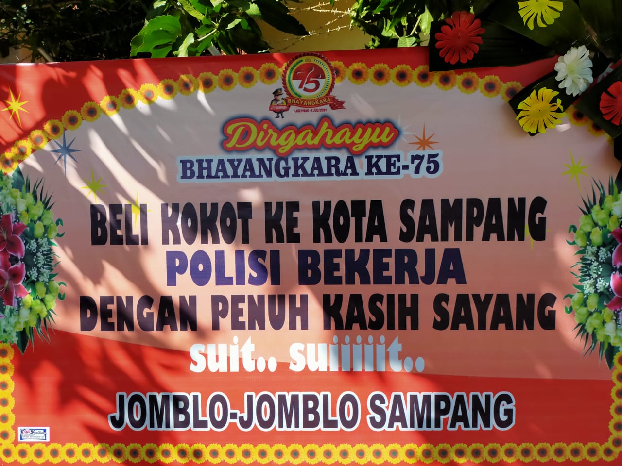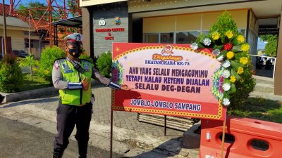 “Kami atas nama Kepolisian Negara Republik Indonesia khususnya keluarga besar Polres Sampang mengucapkan terima kasih yang sebesar-besarnya atas partisipasi semua pihak, telah mengirimkan karangan bunga ucapan selamat HUT Bhayangkara ke-75,” kata Kapolres Sampang AKBP Abdul Hafidz S.IK, M.Si