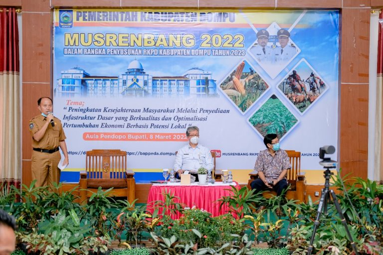 Pemerintah daerah (Pemda) Kabupaten Dompu berhasil menggelar musyawarah rencana pembangunan (Musrenbang) tahun 2022 untuk menyusun program kerja pembangunan tahun 2023. Untuk mewujudkan Dompu Mandiri, Sejahtera, Unggul, dan Religius (MASHUR) dengan komoditi unggulan Jagung, Porang, Padi, Sapi, dan Ikan (Jara Pasaka) serta penciptaan lapangan kerjanya, tahun 2023 ditargetkan anggaran hingga Rp1,16 triliun untuk pembiayaannya.