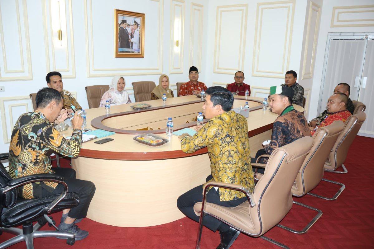 Wakil Bupati Lampung Utara Romli menyambut audiensi Panitia Pembangunan Sekretariat Himpunan Mahasiswa Islam (HMI) Cabang Kotabumi di ruang kerjanya, Kamis 24 Alril 2025.